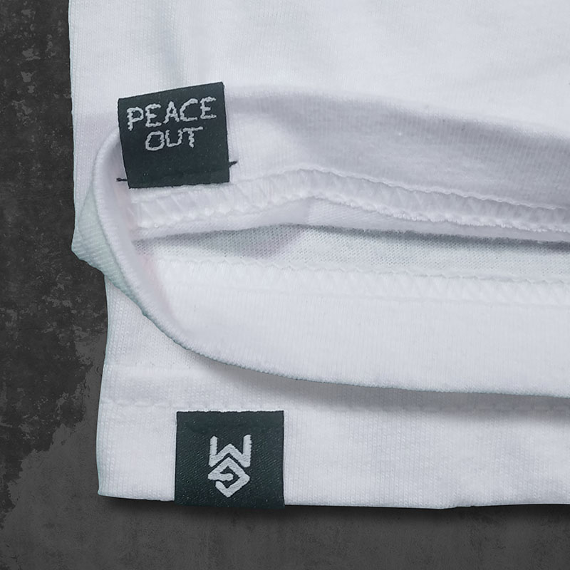 Screenprinted on a comfy white 100% cotton tee.