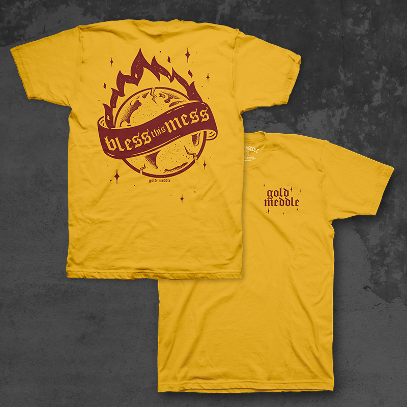 Screenprinted design on a comfy gold 100% cotton tee.