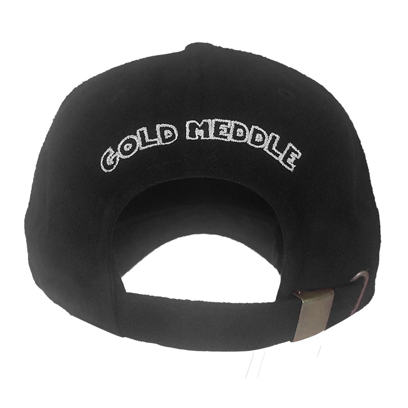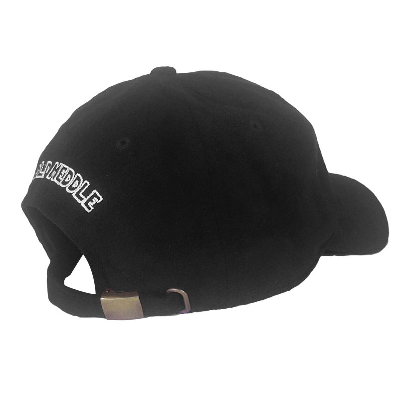 Front and back embroidery. 100% polyester suede. Metal back closure.
